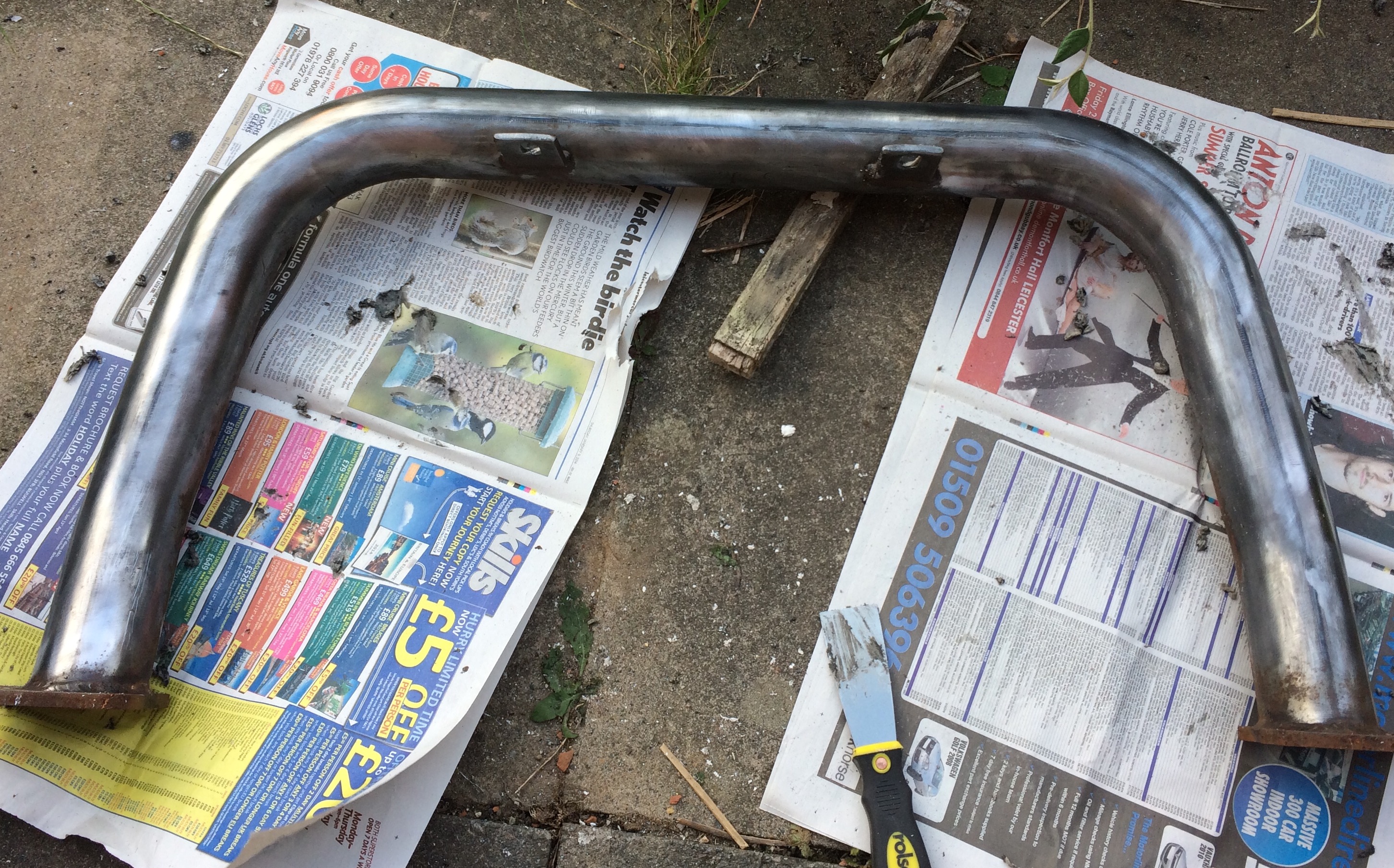 The A bar on my LandRover had see better days. Water had got under the powder coating and it was rusting. I though I’d just strip it and then pain it, but how do you get powder coat off?