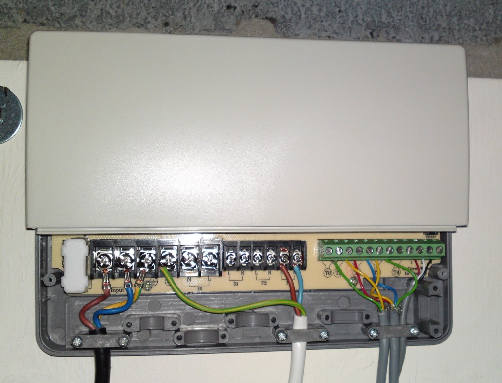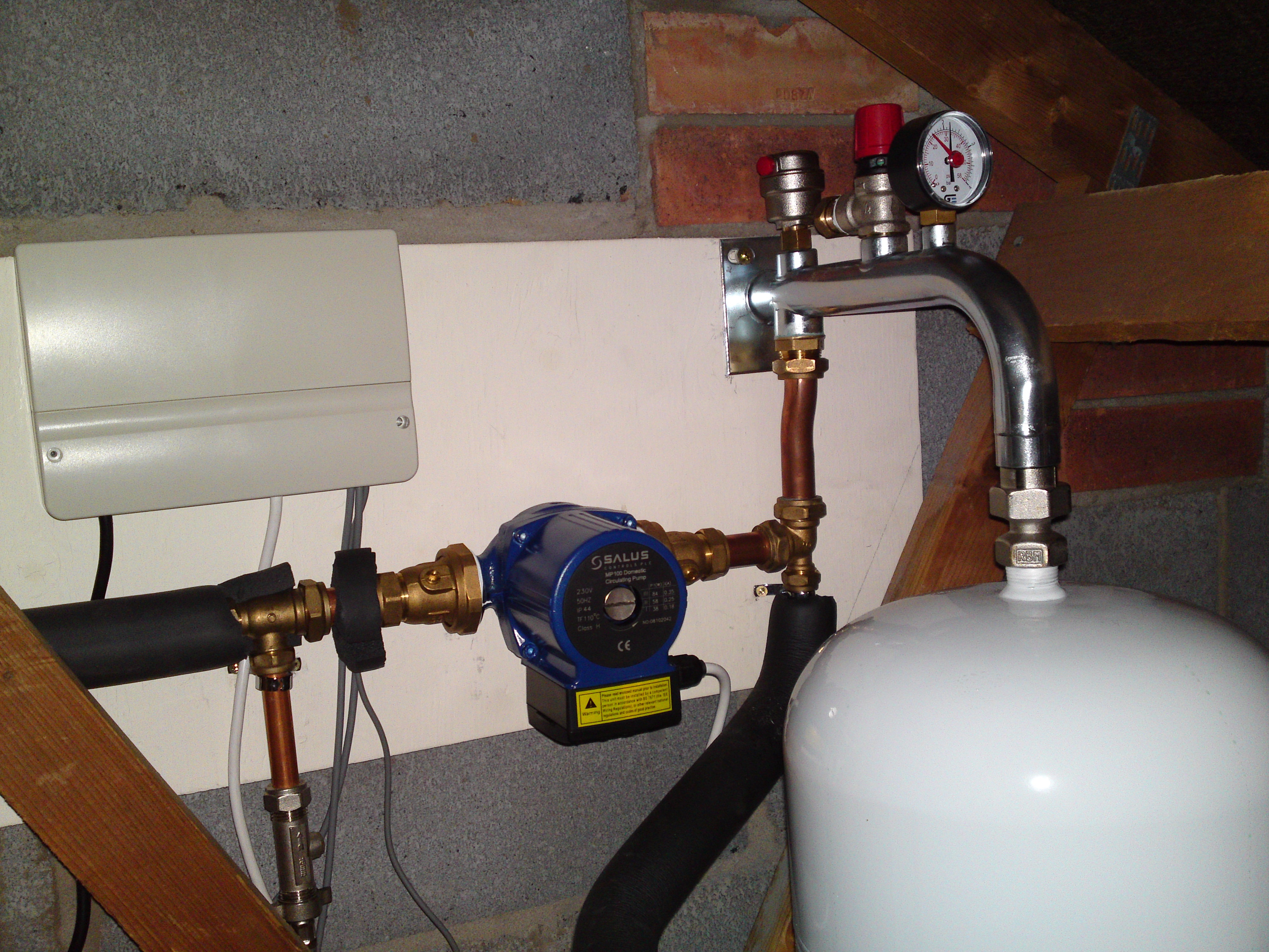 There is a main control unit located in the loft and a remote control panel which I located in airing cupboard. There are three temperature sensors (roof, bottom of tank and top of tank).