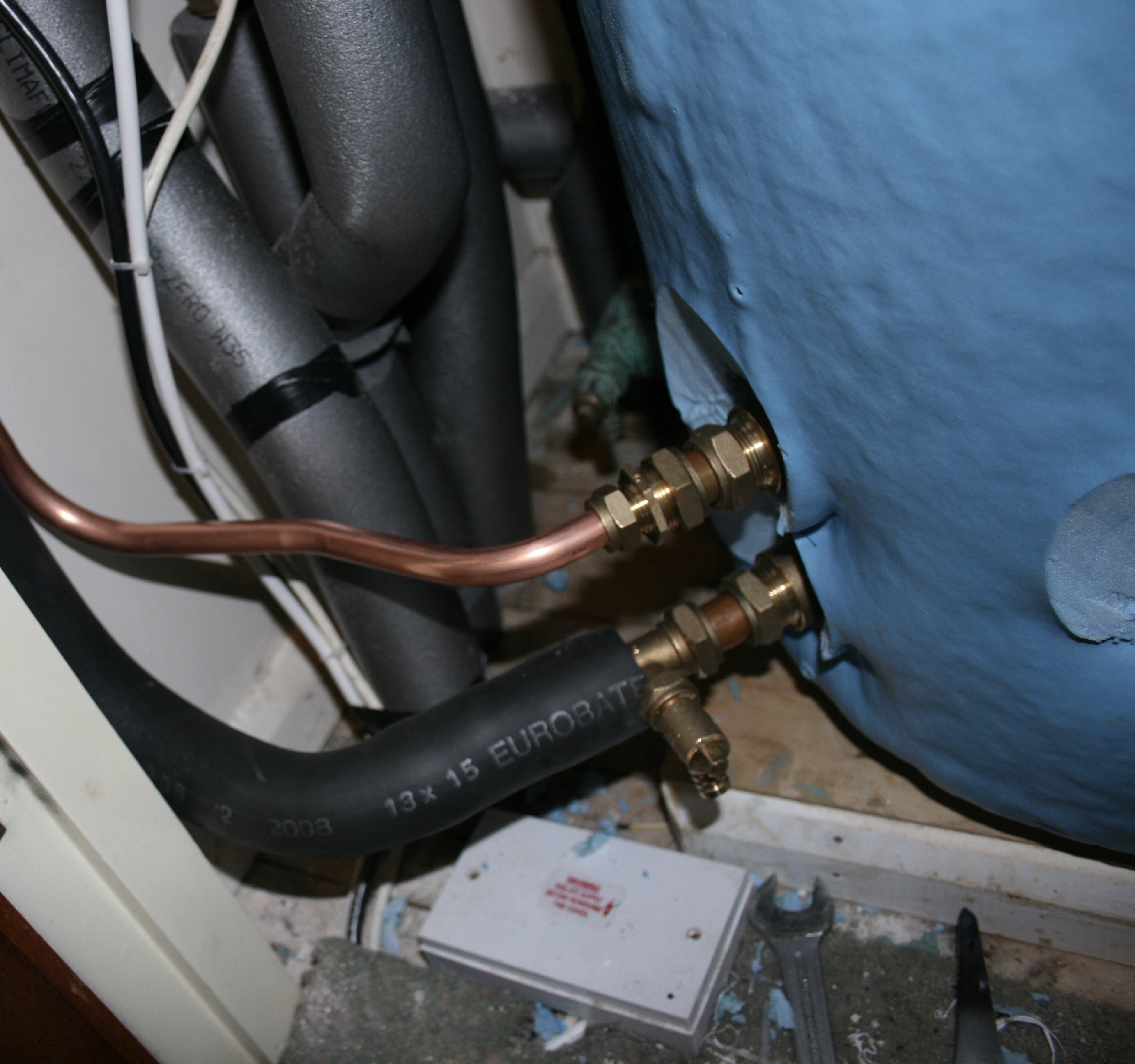 The first jobs is to swap the tanks and return a hot water supply to the house: